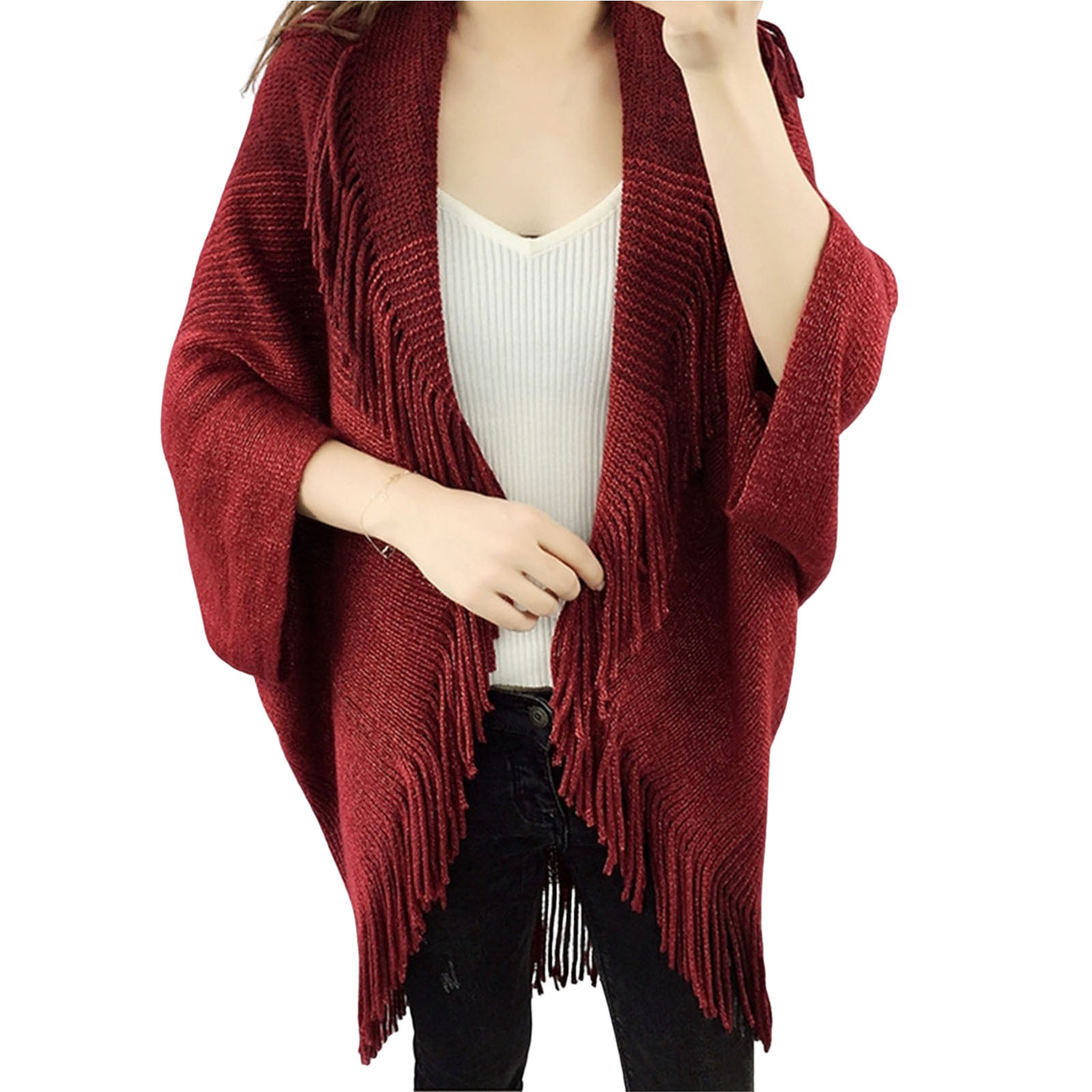 Boc Tassel Cape Fringed Soft Thick Loose Neck Warmer Keep Warm Autumn Winter Tassel Open Front Cape Wrap Shawl For Home Walmart Com